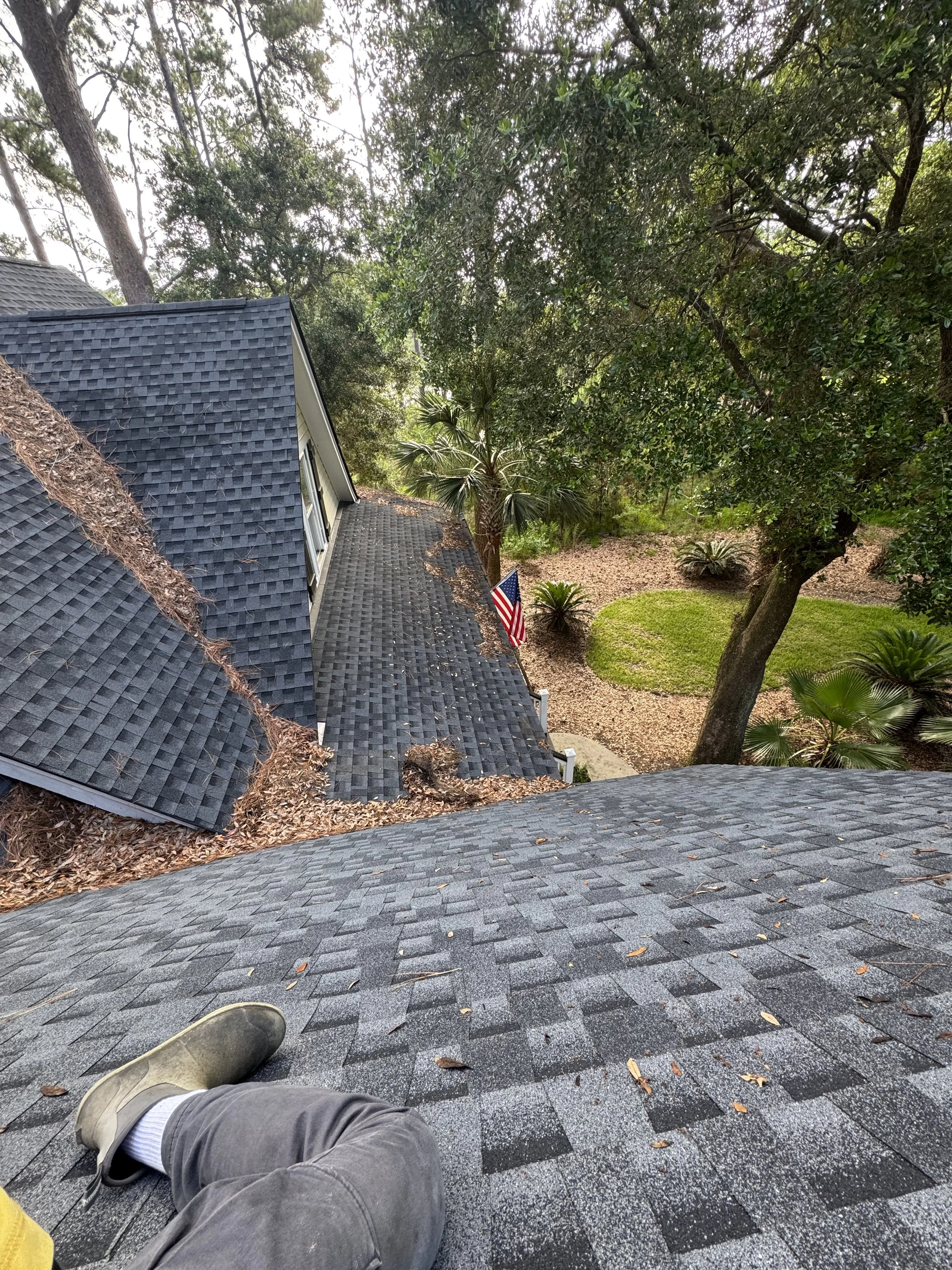 We offer roof and gutter cleanup services for one- to two-story homes with walkable, slightly slanted roofs, clearing out leaves, pine straw, and small limbs to prevent future debris from cluttering your yard. Our team uses high-powered blowers to safely remove buildup, helping your gutters flow freely and keeping your roof clean—so your lawn stays neat and your home protected.